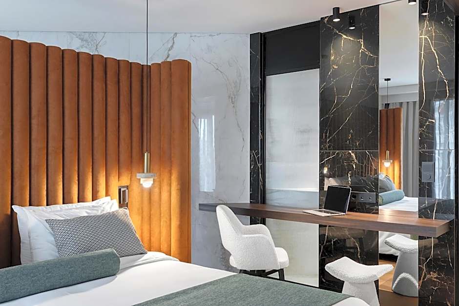 Exterior large rooms facing the roundabout, including one king-size bed and a pull out sofa-bed. They come with a satellite TV, mini safe, direct dial phone in both the room and bathroom, and free uninterrupted WiFi access. Other features include central air conditioning with in-room controls, soundproof windows, balcony, mini fridge, trousers press, and hairdryer.